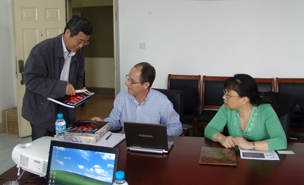 公司党委书记黄步军、经理胡振宇教授、副经理施梁教授等会见了来访客人。胡振宇教授、施梁教授同诺曼教授和唐柠女士就国际交流,以及双方联合展开教学及科学研究事宜交换了意见,并就下一步联合教学工作进行了实质性的具体磋商。