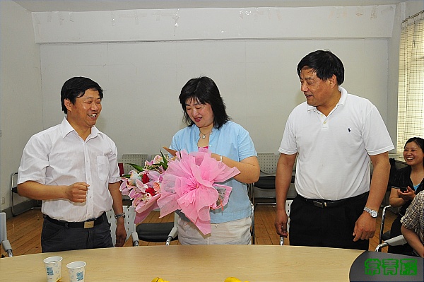 校领导向张伟郁副教授献上鲜花,送上慰问信,并合影留念。