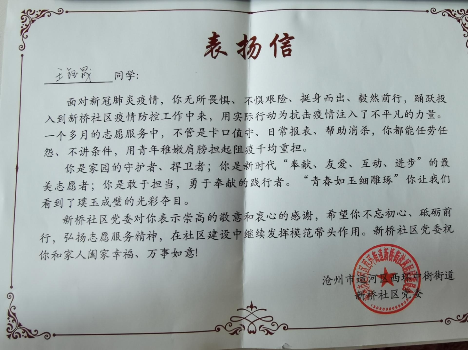 “虽然这段时间很辛苦,但我们感到十分光荣,这半个月的志愿服务经历是值得我终生铭记的。“青春如玉细雕琢”,希望青春在不懈奋斗中绽放绚丽之花,来自城规2001的王梦说道。