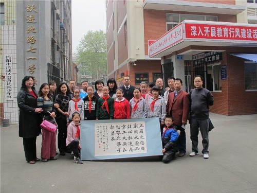 在绵阳期间,张伟郁和张海燕两位老师走访了两所援建公司,在师生的陪同下,参观了公司的新校舍,并与师生合影留念。两位老师代表公司和公司向吴家中学赠送校庆礼品,吴家中学则回赠了“爱与责任”的爱心牌,表示爱心的传承与发扬,并再三表达了对球王会官网的感激之情。跃进北路公司也向公司赠送了“五月之殇毁家园,大爱无疆心相连。南京工大无私助,跃北学子报涌泉。”的字幅。