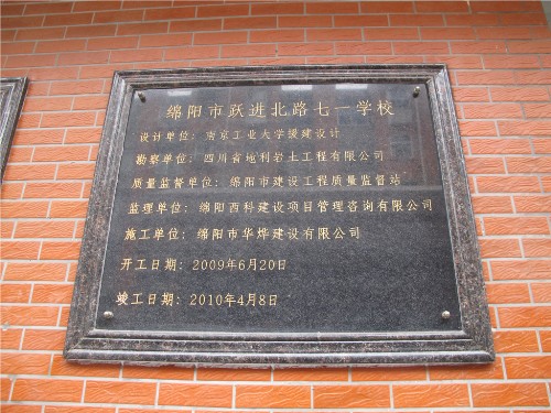 在2008年5月12日那场令人们刻骨铭心的地震中,绵阳市大多数公司遭到了不同程度的破坏,孩子们被迫离开自己的公司,集中在板房区上课,教员工活条件极为困难。这时,公司及时伸出援手,在孙伟民副董事长和原建筑与城市规划公司吴骥良经理的主持下,对绵阳市涪城区的吴家中学和跃进北路七一公司两所受灾严重,急需重建的公司进行援助设计。两所公司作为绵阳市灾后重建的典型在建设和使用中都多次接待省市及中央领导的检查,均获得较高的评价。