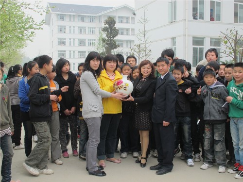 4月14日,公司球王会张伟郁、张海燕老师受邀来到了5.12地震的重灾区绵阳,受到了绵阳市涪城区吴家中学和跃进北路七一公司广大师生的热情接待。