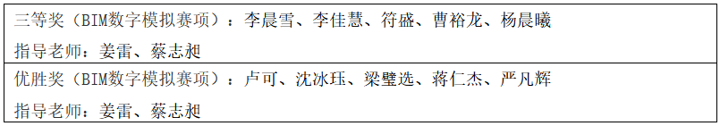 两项BIM大赛开始于2021年1月,于2021年5月30日落下帷幕。公司姜雷、蔡志昶老师指导,本科生蒋仁杰、梁璧选、沈冰珏、严凡辉、曾天华、曹裕龙、符盛、杨晨曦同学,研究生李佳慧、李晨雪、卢可同学参加,与土木工程公司的师生通力合作,在大赛中获得了优异的成绩。