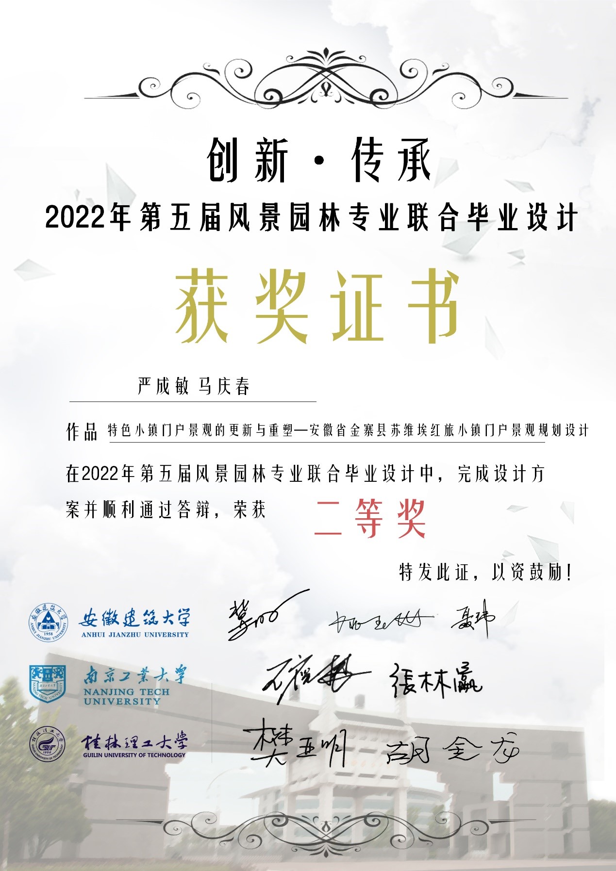 6月6日,创新·传承——2022年第五届三校(球王会官网、安徽建筑大学、桂林理工大学)风景园林专业联合毕业设计终期汇报在线上成功举行。
